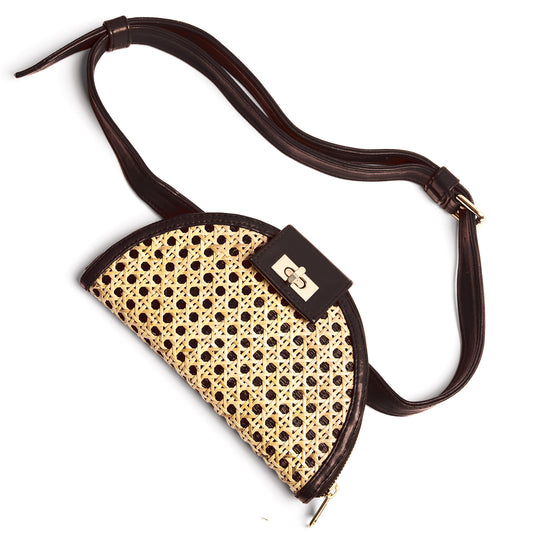 THE HANNAH Tan Leather & Rattan Weave Crossbody & Belt Bag