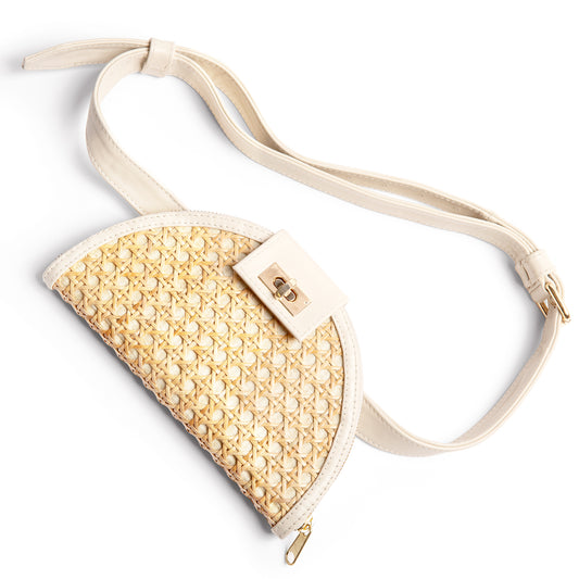 THE HANNAH Cream Leather & Rattan Weave Crossbody & Belt Bag