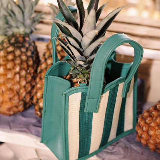 THE Nina Green & Cream Woven Straw & Leather Small Shopper Tote Bag