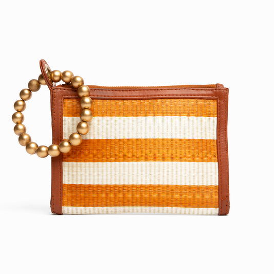 THE HAILEY Orange Stripe Wristlet Pouch Luxe Woven Wristlet Pouch