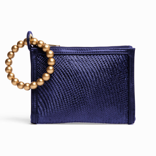THE SADIE Navy Blue Luxe Woven Wristlet Pouch