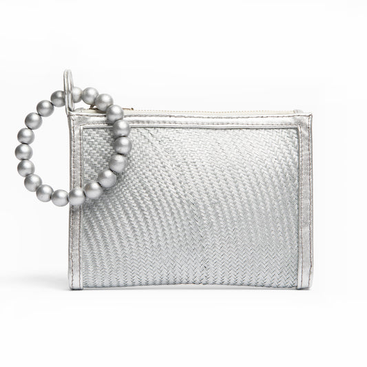 THE SADIE Silver Luxe Woven Wristlet Pouch