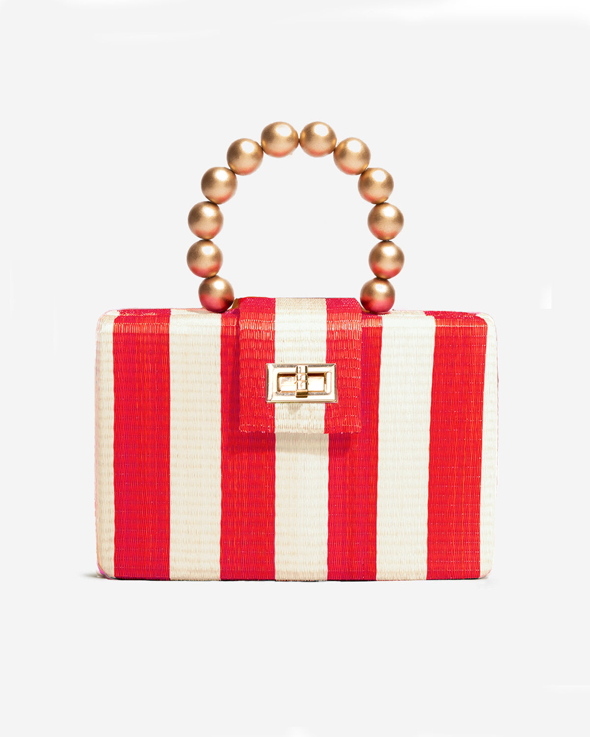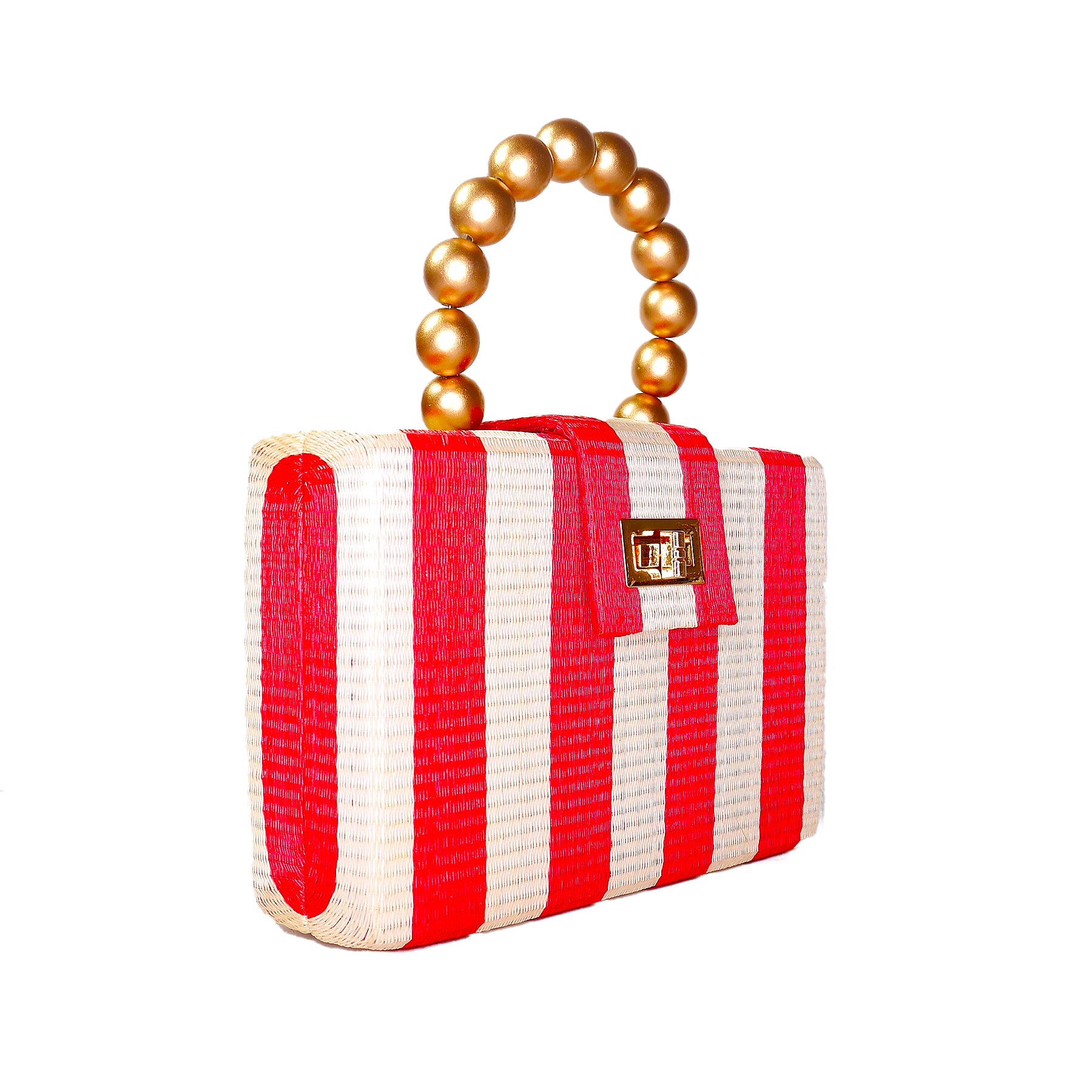 Introducing the Louisa Clutch in a classic red and cream colorway, a timeless addition to our collection. This eye-catching accessory perfectly captures the essence of vacation vibes and sophisticated elegance.