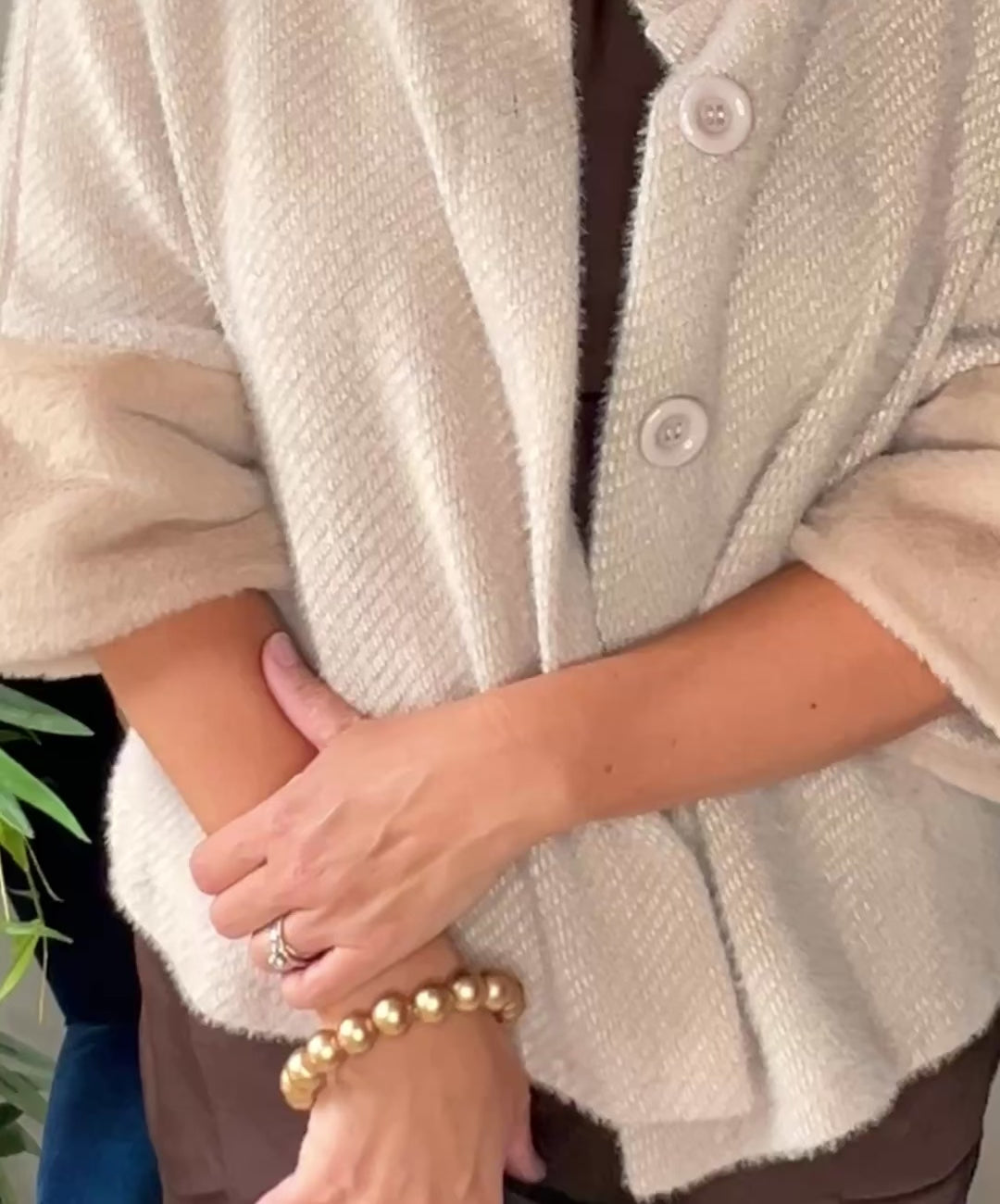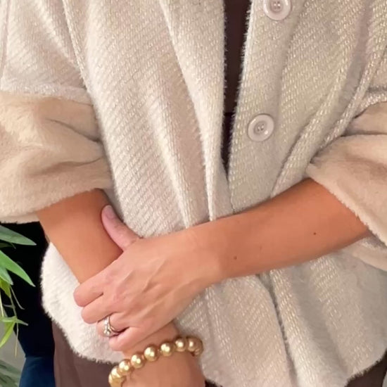 - Statement Design: Statement gold bead handle that doubles as a wrist bracelet